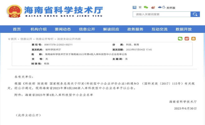 2023年7月,,,,,,,海南省科学手艺厅官网通告了海南省2023年第4批入库科技型中小企业名单,,,,,,,海南麻将胡了PG制药有限公司乐成入选。。。。。。。。这次入选不但是对麻将胡了PG制药在药物研发、生产方面的科研能力的高度一定,,,,,,,更是对其一直追求立异和卓越的精神的认可。。。。。。。。